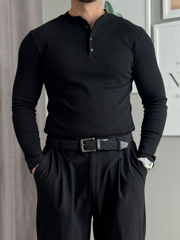 هنلی شرت مردانه کبریتی یقه دکمه